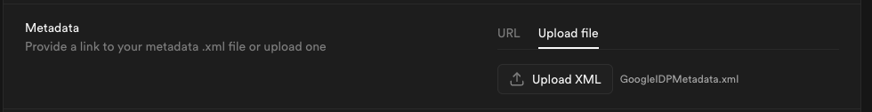 Upload the metadata file you downloaded in Step 6 into the Metadata Upload File field.