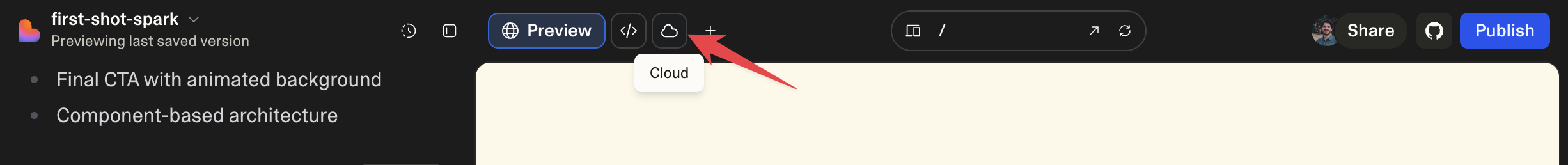 In the Lovable interface, click the Cloud icon on the top bar of your project editor. This section shows which backend your project is currently connected to.