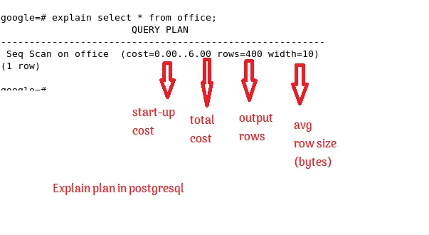 cost=0.00..19.00: This represents the estimated cost of executing the plan. The first number (0.00) is the cost of returning the first row, and the second number (19.00) is the total cost of executing the query and retrieving all rows. These values are arbitrary units determined by the database's cost model, not actual time or resources.